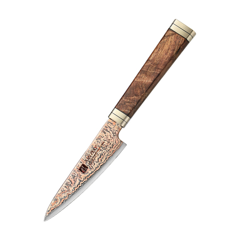 Xinzuo มีดปอกผลไม้เหล็กดามัสกัสใช้ในครัวทำมือด้ามไม้โอ๊คสีขาวเผา